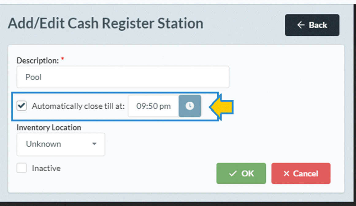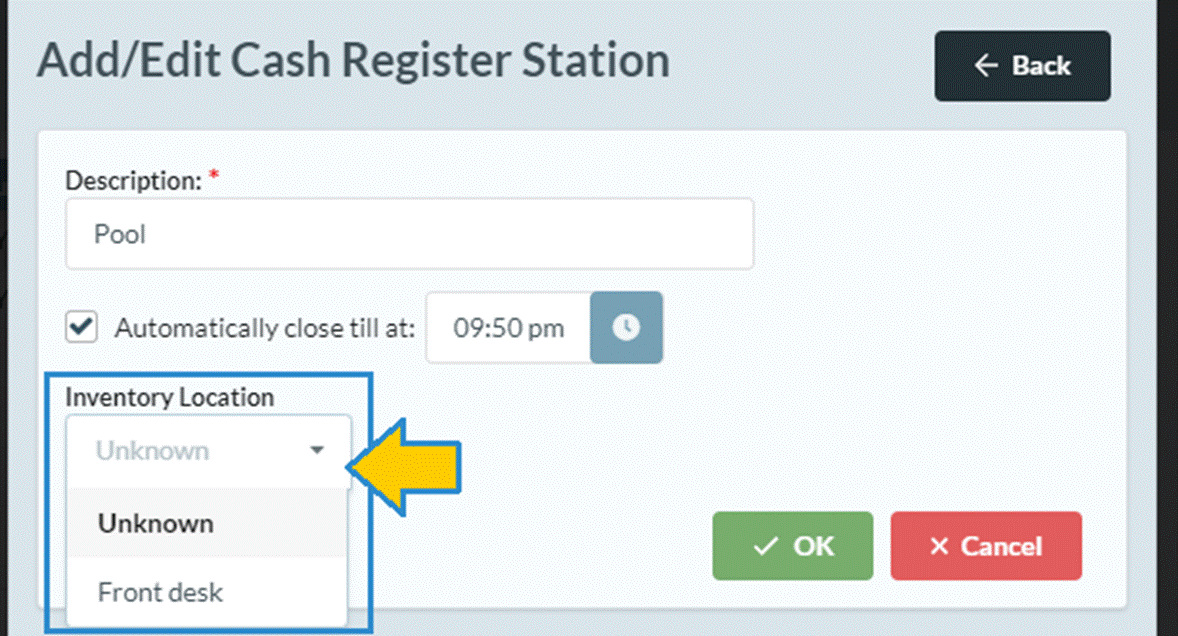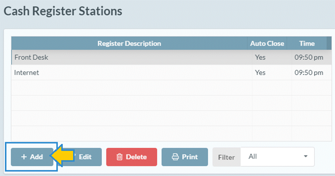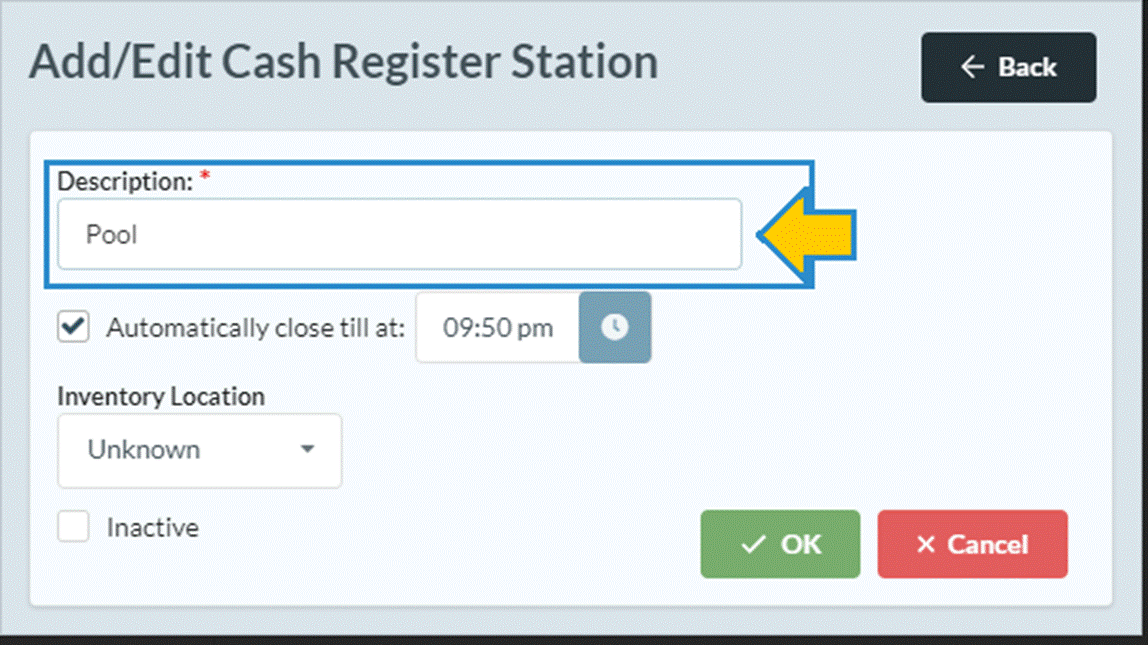 Reservation, Merchandise, etc.), it must be assigned to a cash register