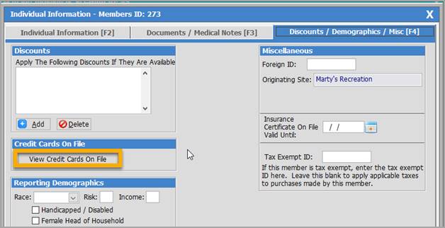 Then click the [View Credit Cards On File]