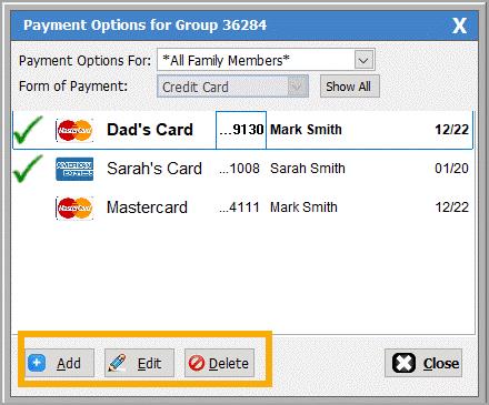 credit card payment options for any or all family members, or add, edit or